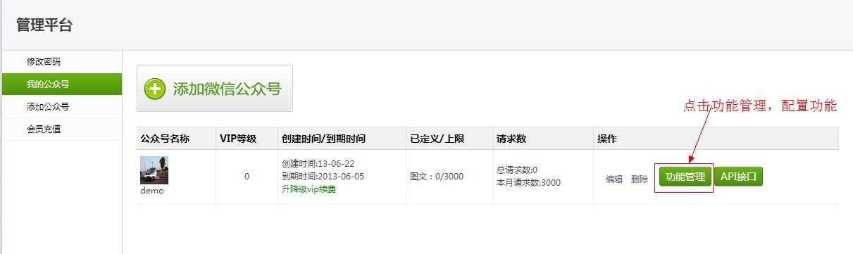 4、在手机上用微信给你的公众号输入"帮助",如果能接收到信息就接入成功,否则请按照以上步骤重新配置